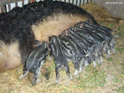 ПРОДАМ Поросята венгерской мангалы за 1 200 грн. Свиньи этой породы не боятся морозов, не болеют, растут до 300кг. Летом основной рацыон составляет трава. Зимой едят сено. Мясо этих свиней содержит мало холестирина. У свиней мангал генетически заложена интенсивность наращивания мышечной, а не жировой ткани. Они практически совсем не жиреют. Одна из важных особенностей этой породы - всеядность. Свиньи поедают как растительные, так и животные корма и отходы их переработки. Зимой рацион мангалов состоит из сена, измельченных стеблей кукурузы, корнеплодов, каштанов, желудей. Мангалы не нуждаются в сложных условиях содержания. ВЛАДИМИР тел. 099-657-43-63, |
