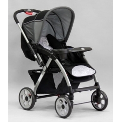 • Три положения спинки • Алюминиевая рама • Колеса из псевдорезины • Амортизирующее устройство • Перекидывающаяся ручка • Ремни безопасности • Столик |
