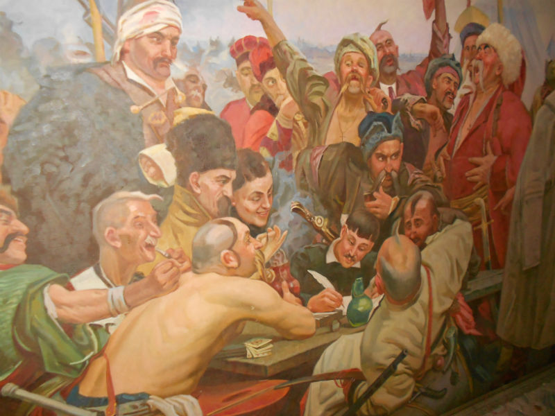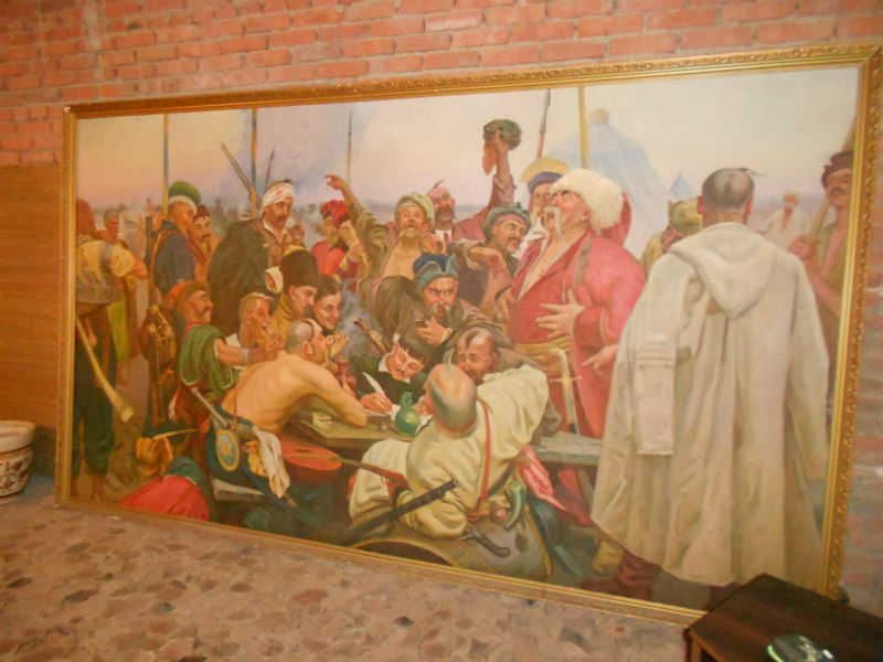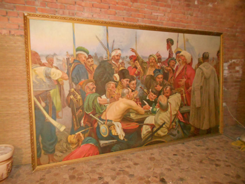 копия картины И.Е.Репин "Письмо запорожцев турецкому султану" холст, масло, размер 2х3,6 метра. Художник Гуменюк П.М. 1991 г. |
