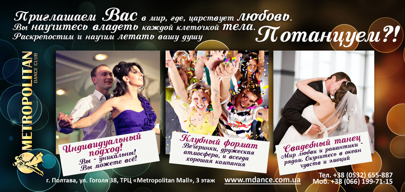 Услугу постановки свадебного танца недорого предоставляют многие школы танцев в Полтаве, но только Wedding Card танцевального клуба Metropolitan Dance предоставляет ряд уникальных преимуществ: