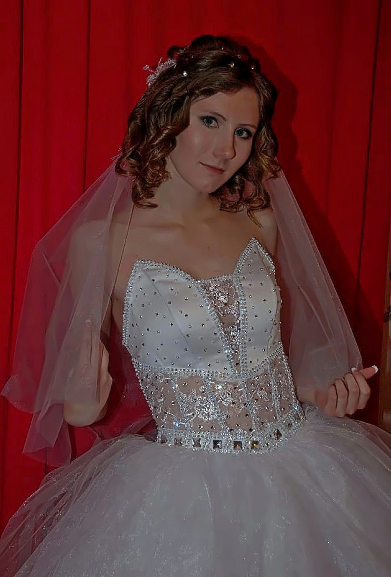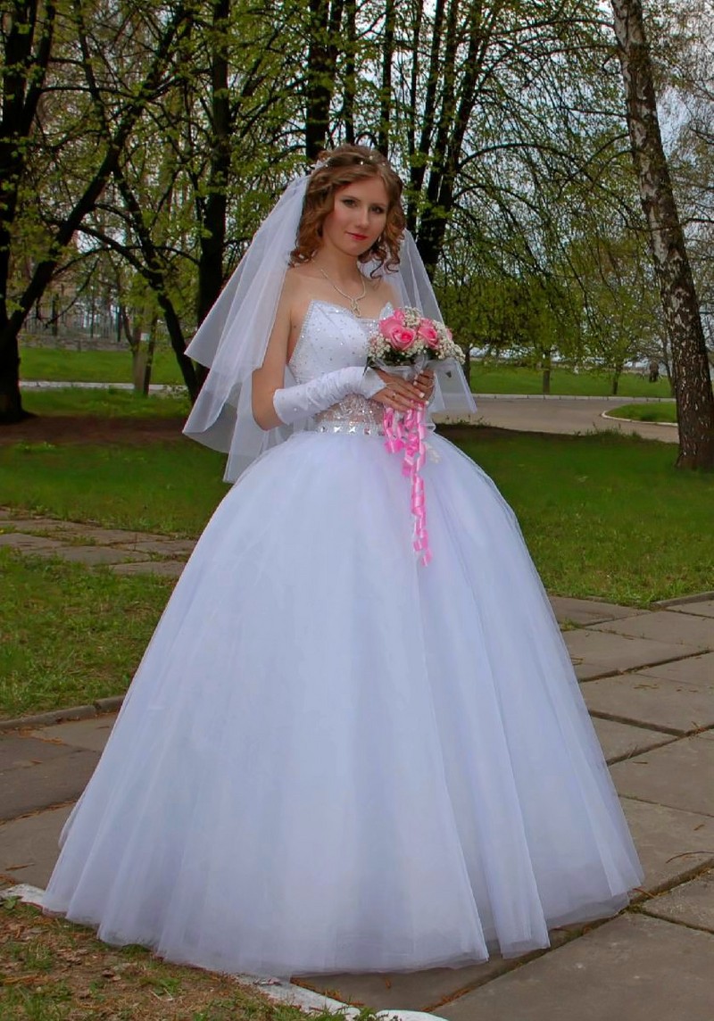 Продам белоснежное свадебное платье. Одевалось 1 раз, невенчанное. Размер 42-46.Состояние отличное! Сидит великолепно! Корсет усеян стразами, которые сверкают при свете и на солнце. Юбка очень пышная, состоит из 8-ми слоев фатина и белой ткани (похожей на шелк) под ними. В подарок к платью: подъюбник (кольца), елегантные перчатки, цветы в волосы (к фате). Торг. |