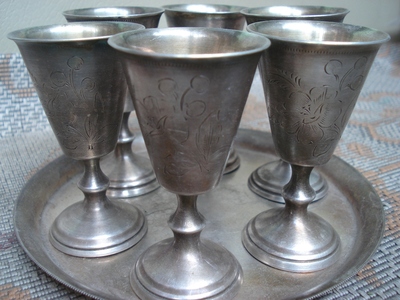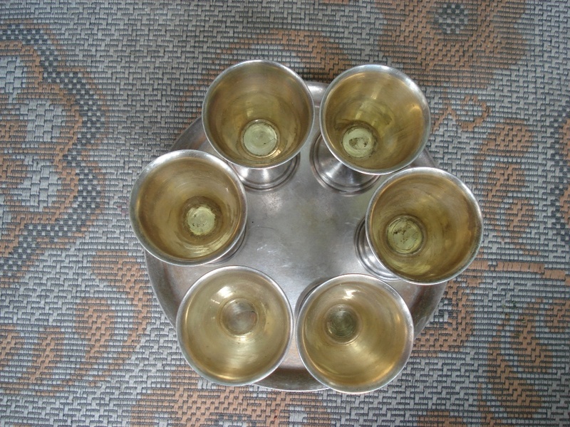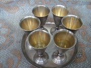 Серебряный столовый набор : рюмки + поднос. Всего 7 (семь) предметов . т.: 066 327 8039 |