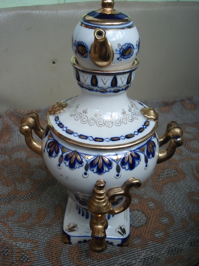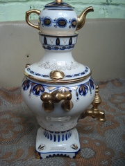 Фарфоровый самовар производства "ГЖЕЛЬ". Высота 25 см. - Керамика - антиквариат