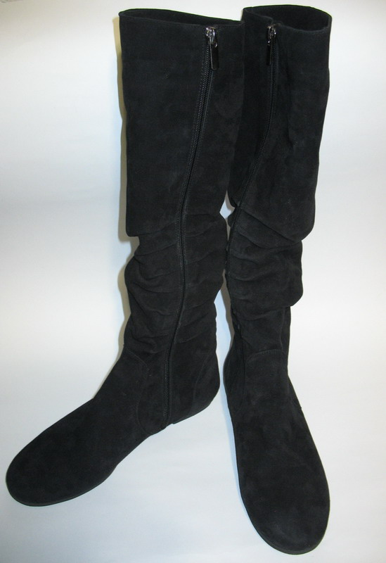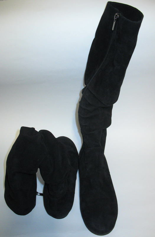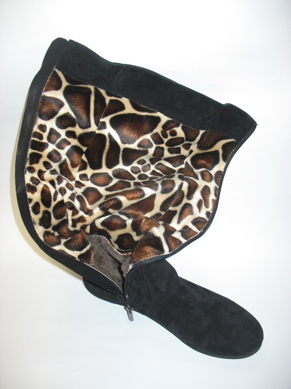 Продам женские сапоги. Сапоги не одевались ни разу. Шились на заказ заочно, и не подошел размер. Характеристика: - Замшевые; - Черные; - Высокие (от основания подошвы до самого верха - 45 см); - Внутри голенища исскуственный мех с коротким ворсом; - Внутри основания - исскуственный мех с длинным ворсом; - Размер - 39 (длина подошвы - 26,9 см); - Без каблука (плоская подошва); - Обхват голенища в самом верху - 28 см. |