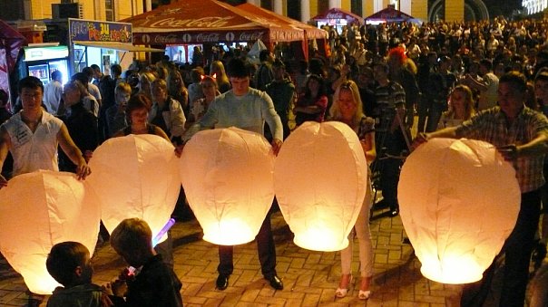 Небесные фонарики – это объёмные конструкции различных форм и размеров, сделанные из специальной экологически чистой бумаги, действующие по принципу воздушного шара. Надежно закрепленная в нижней части бумажного купола горелка разогревает воздух внутри фонарика, поднимает его вверх и эффектно подсвечивает изнутри, создавая таинственный ореол. Длительность полета составляет приблизительно 20 минут, за это время бумажный фонарик поднимется на высоту до 200 метров, и с земли Вы сможете наблюдать сначала огненный шар, а потом яркую светящуюся точку, курсирующую по небу. Небесного фонарика отличаются друг от друга размерами, формой, качеством бумаги и горючими материалами, чем больше и качественнее изделие, тем выше цена. В наличии небесные фонарики от 15 до 80 грн. Также мы предлагаем: - огненное, пиротехническое и световое шоу; - пиротехнические и огненные надписи, фигуры, логотипы; - огненное и световое декорирование; - водные фонарики, пневмохлопушки; -фейерверки, пиротехника. Соотношение «цена-качество» Вас приятно удивит. С нами Ваш праздник становится ярче! На любые интересующие Вас вопросы мы ответим по тел: +38 066 357 23 14, +38 098 446 13 19 Александр. Подробнее с нашими работами и предложениями вы можете ознакомиться на нашем сайте: http://burnout.ucoz.ua/ Мы в контакте: http://vk.com/burnoutart E-mail: artshowburnout@yandex.ua |