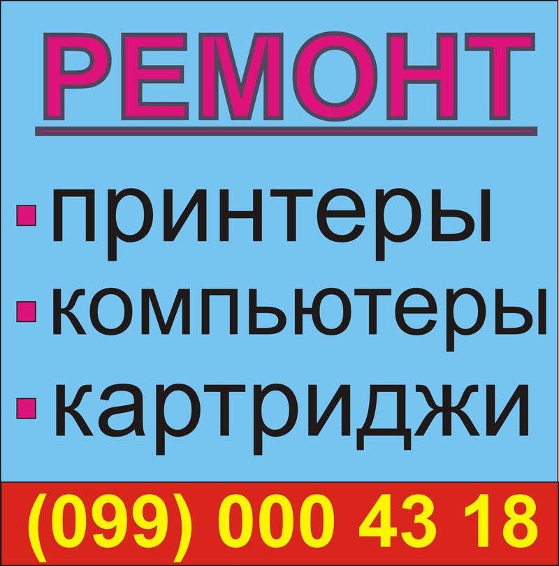 Ремонт компьютеров, ноутбуков, нетбуков. Ремонт принтеров лазерных, струйных, установка СНПЧ (Система Непрерывной Подачи Чернил). Заправка картриджей лазерных, струйных. Возможен выезд тел. 099 000 43 18 |