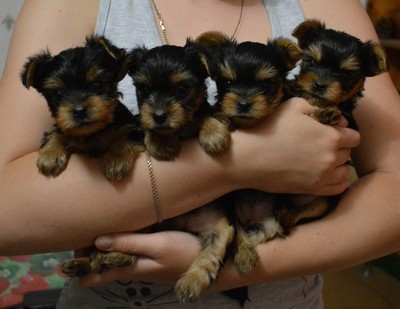 Четыре прелестные девочки йоркширский терьер 1,5 месяца без документов. |