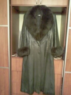 демисезонный кожаный плащ в нормальном состоянии,мех отстёгивается,размер 50-52,в комплекте шапочка из кролика |