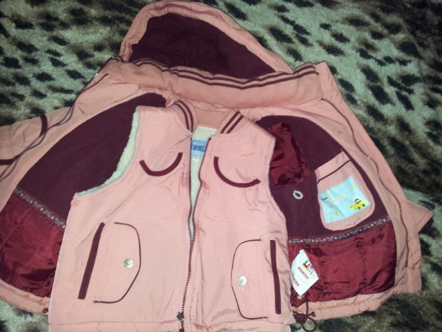 Зимний комплект для девочки.Размер 92.Капюшон отстегивается.Рукава куртки с отворотом для регулировки длины и с трикотажными манжетами изнутри.Длина брюк регулируется отворотом, изнутри брюк на подкладке находится резинка, которая надевается на обувь, для сохранения тепла.Внутри Теплый желет,тоже отстегивается. |