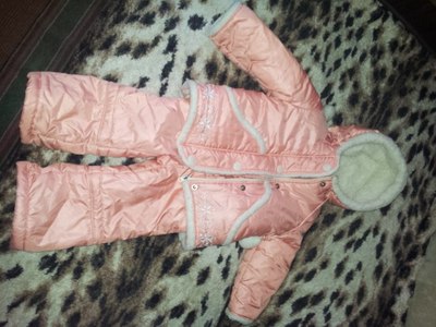 Теплый набор для девочки.Комбинезон и куртка нежного цвета.Размер 26.Рост 86-92 см.Очень теплый и удобный.Фирма в СанктПетербурге шьет.Очень нравится. |