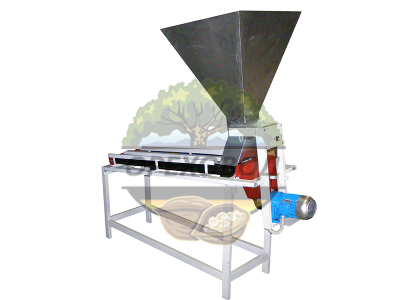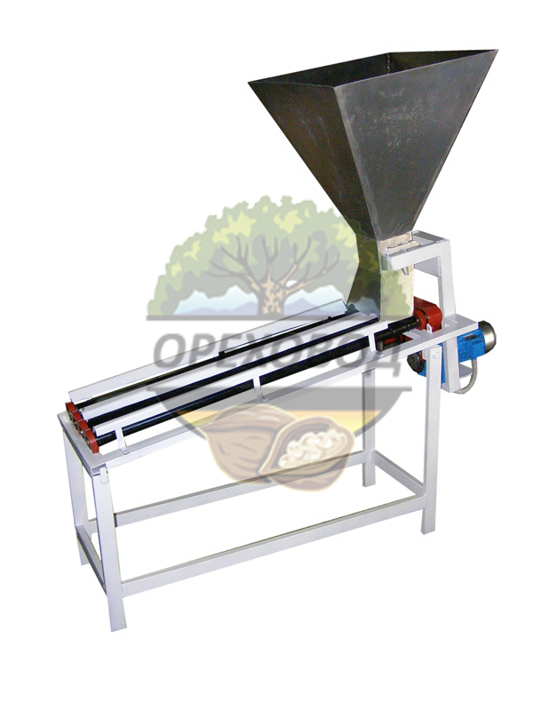 Данный калибратор, в отличии от роторного( у которого фиксированные по размеру отверстия, без регулировки), имеет гибкую систему настроек. На установке расположены 4 вращающихся вала, зазоры между которыми можно регулировать самостоятельно, в зависимости от размера ореха (от 1,5см. до 6 см).