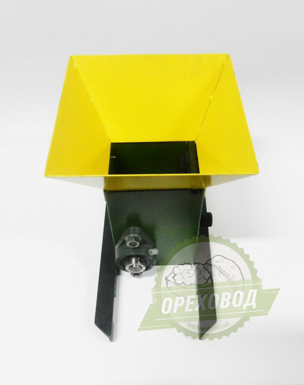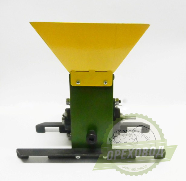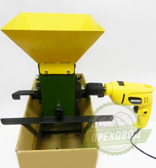 Подсоединяем дрель или шуруповерт к колющему валу в роли привода, устанавливаем нужный калибр, запускаем привод, загружаем орех в бункер (объем бункера 3 кг). Раскол скорлупы происходит при вращении вала с зазором, который захватывает орех и прижимает к стенке колющего бункера, проворачиваясь раскалывает и отправляет его в выгрузочный лоток. Усилие и зазор между валом и стенкой легко регулируется даже во время роботы орехокола, в результате достигается оптимальный раскол ореха и максимальный результат. Для обслуживания установки требуется один человек.