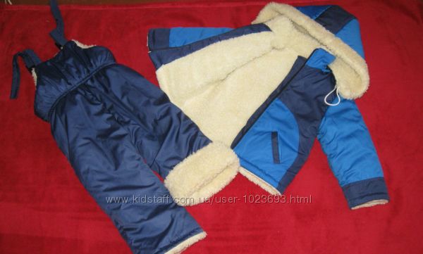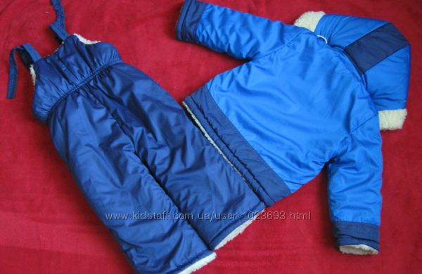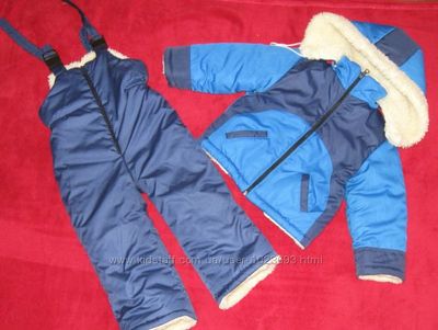 Зимний комбинезончик для маленького мальчика.Состоит из плотной плащевки одного слоя синтепона и меха. Мех состоит из 50 % шерсти. Что и делает комбинезон очень теплым. При теплой погоде капишончик можно снять. Длину штанишек можно отредактировать при помощи лямок. Вашему ребёнку в нём будет уютно и легко, поскольку сам комбинезон очень лёгкий.