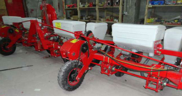 Сеялка точного высева СУПН 6 СУПН 8 Универсальная пневматическая сеялка СУПН-8(СУПН-6)Пропашная.Принцип работы СУПН.сеялка супн-8 технические характеристики: Посредством механизма передач от опорно-приводных колёс осуществляется вращение семявысевающих дисков и шнеков туковысевающих аппаратов. С помощью вакуума семена присасываются к находящимся в зоне разряжения отверстиям вращающегося диска и транспортируются из заборной камеры в зону сброса. Удаление лишних семян, присосавшихся к отверстиям, обратно в заборную камеру, осуществляется сбрасывающей вилкой. Сошник делает бороздку, укладывает сначала туки, они присыпаются землей и далее, в бороздку, падают семена так, что нет контакта семян с туками. Загортачи закрывают бороздку, прикатывающее колесо уплотняет почву, создавая контакт семян с почвой и условия для подтягивания для них влаги, а шлейф выравнивает поверхность поля и создает мульчированный слой почвы.