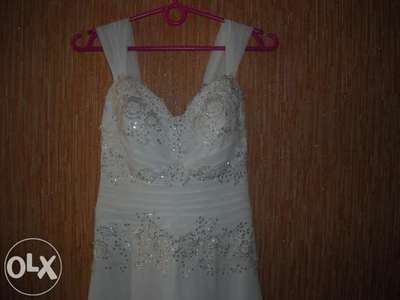 Продам сввадебное платье недорого. Очень красивое. Одевалось один раз. В идеальном состоянии.Верх обшит бисером, материал юбки - атлас, сверху фатин. Благодаря корсету можно регулировать размер.Подойдет на рост 165-167 см. |