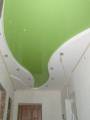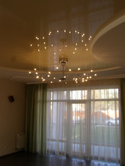Натяжные потолки при установке крепятся на 3 см ниже существующего, а при наличии встроенных светильников -на их высоту. В натяжные потолки можно встроить различные осветительные приборы, системы вентиляции, сигнализации и противопожарной безопасности, скрыть встроенную электропроводку. Правильно подобранное освещение или подсветка придаст интерьеру Вашего помещения исключительно индивидуальный внешний вид.