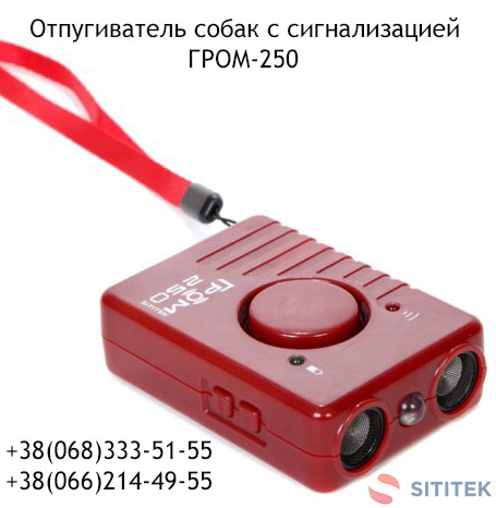 Купить отпугиватель собак с сигнализацией Гром-250 с бесплатной доставкой по Украине вы можете в интернет-магазине sititek.com.ua либо позвонив по тел. +38(068)333-51-55, +38(066)214-49-55.