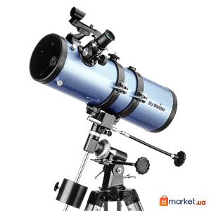SkyWather D=114-мм F=500мм, рефлектор Ньютона, Экваториальная монтировка EQ1 с механизмами тонких движений и координатными кругами, Алюминевый штатив с полочкой для аксессуаров,Искатель StarPointer, Три окуляра 4, 12,5 и 20 мм (1,25), использовался несколько раз.0934649109 г Полтава |