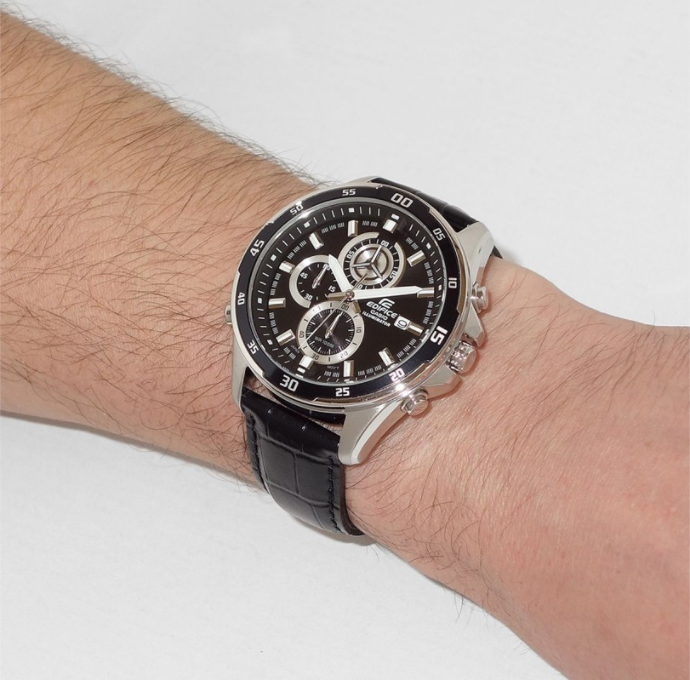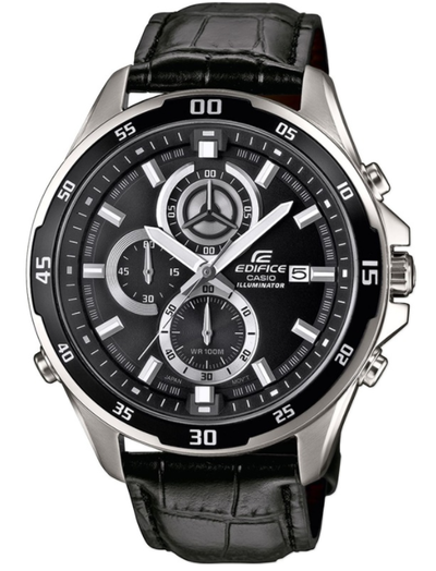 Часы CASIO Характеристики Бренд: Casio Коллекция: Edifice Страна производитель: Япония Фабрика сборки: Китай Пол: мужские Тип механизма: кварцевый Название механизма: 5372 Материал корпуса: сталь Тип крепления: ремешок Материал крепления: кожа Цвет циферблата: черный Стекло: минеральное Цвет корпуса: стальной Индексация: индексы Водозащита: 10 ATM Толщина: 13.9 мм Индикация даты: Да Секундомер: Да Длина корпуса: 47.2 мм Ширина корпуса: 54 мм Подсветка: Да Формат времени: 12 часовой Гарантия: 24 мес. необрит, секундомер, задняя крышка с винтовым фиксатором, календарь, кожаный ремешок, размеры корпуса: 54,0x47,2x13,9 мм, вес 130 гр |