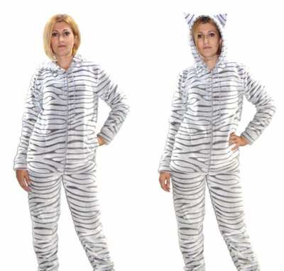 Он состоит из штанов на манжетах и кофты на застежке с капюшоном, на котором прикреплены ушки. Полотно практичное, теплое, хорошо стирается.