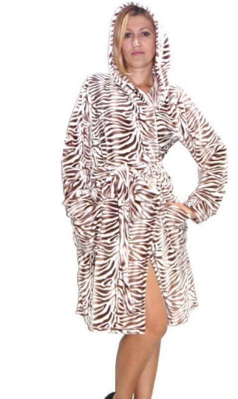 Данная модель представляет собой махровый халат с запахом и капюшоном. Оригинальная пестрая расцветка в спокойных тонах оптимальна для женщины любого возраста, поэтому одинаково подойдет молодым девушкам и женщинам в возрасте. В наличии полный размерный ряд 42-54.