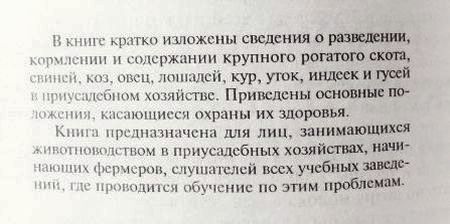 Приусадебное животноводство и птицеводство. Авторы: А.Иващура, Н.Демидов и др. Из-во «Феникс», Ростов-на-Дону, 2001г. Формат 84х108/32, язык русский, 384 стр. с иллюстрациями, переплёт твёрдый, состояние хорошее. В книге кратко изложены сведения о разведении, кормлении и содержании крупного рогатого скота, свиней, коз, овец, лошадей, кур, уток, индеек, гусей в приусадебном хозяйстве. Оплата и доставка: Предоплата на карту Приватбанка. Доставка только по Украине Новой Почтой или Укрпочтой. Доставку оплачивает Покупатель по тарифу перевозчика при получении. |