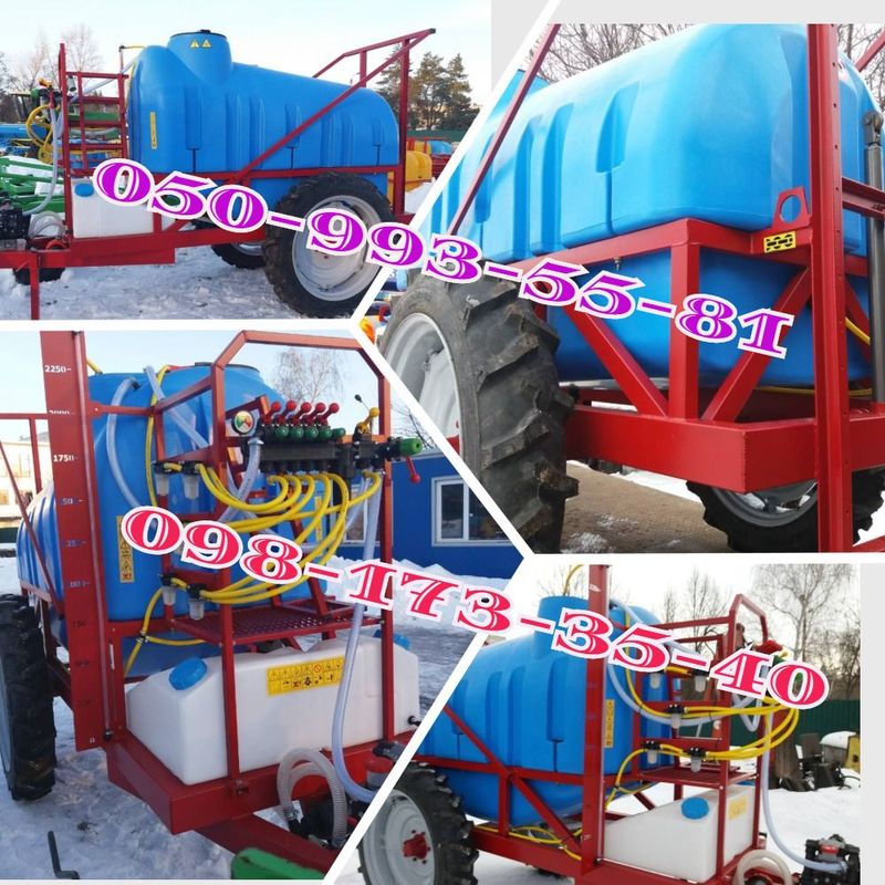 Подъем и опускание штанги на гидравлике, раскладывание крыльев-мехническое. Прицепные штанговые опрыскиватели на 2000/2500 л шириной захвата штанги 18 м. Штанга имеет эффективные (запатентованные) механизмы стабилизации положения рабочих органов, фиксации секций штанги в одной плоскости и предотвращения ее повреждений при столкновении с препятствиями, а также механизмы приглаживания динамических нагрузок в вертикальной и горизонтальной плоскостях. Все опрыскиватели укомплектованы итальянским оборудованием (пульт управления, 3х позиционные форсунки, шланги, усиленные ступицы, фильтра, насос). Поставляются в собранном состоянии в комплекте с карданным валом