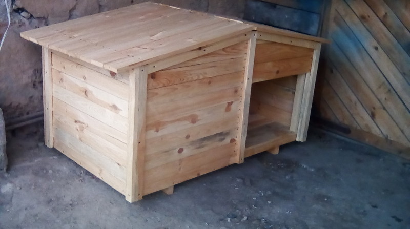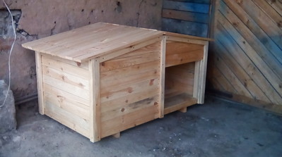 Продам большую будку для собаки, на два отделения . Изготовлена из простроганной шпунтованной доски. |