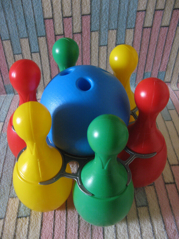 Кегли и шар для детского боулинга в отличном состоянии (состояние новых). На улицу не выносились. |