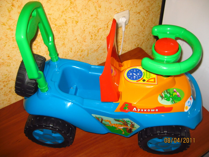 Каталка Дракоша В комплекте руль и спинка-ручка,сигнал и багажник.Ребенка можно катать или он может отталкиваться сам ножками Машинка помогает развить моторику,координацию, но главное эти игрушки очень нравятся детям.Размер: 670*290*460 мм производитель: Orion |