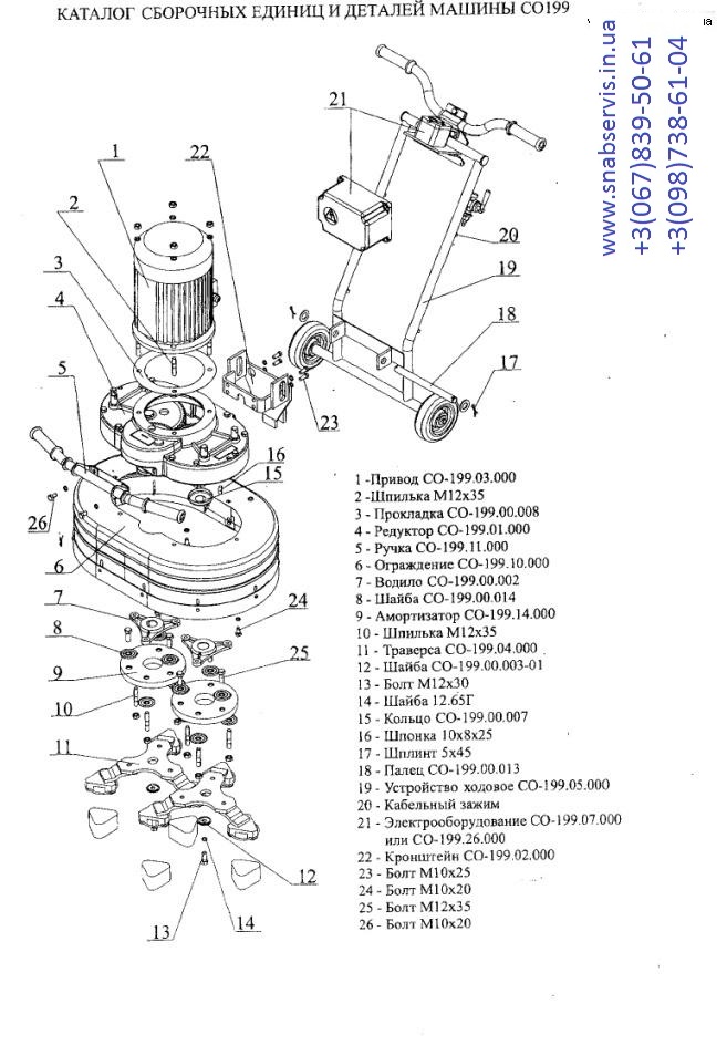 Запчасти к мозаично-шлифовальным машинам СО 199: шестерня павая, шестерня, левая, блок шестерен, траверса, водило, аммортизатор, кольца, переходной адаптер 95мм, с креплением велькра (липучка), алмазные шлифсегменты и т. д