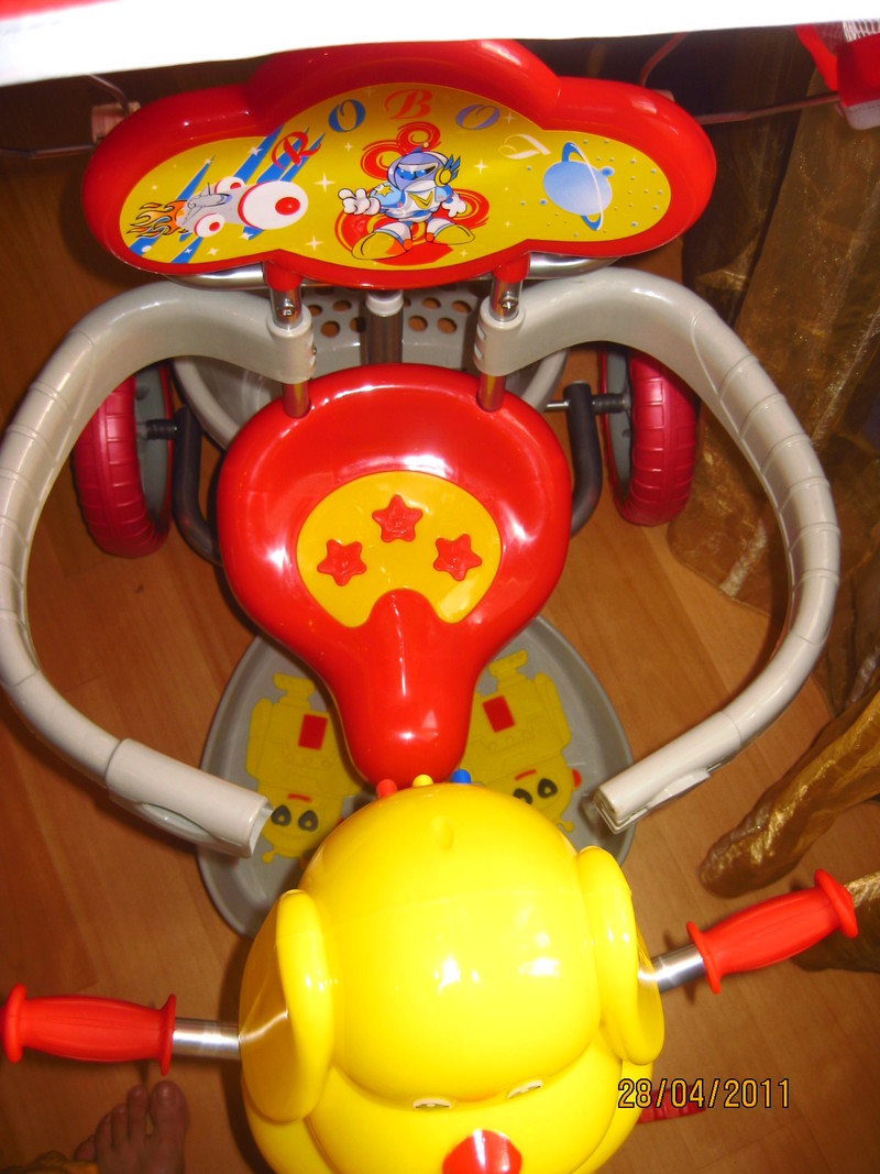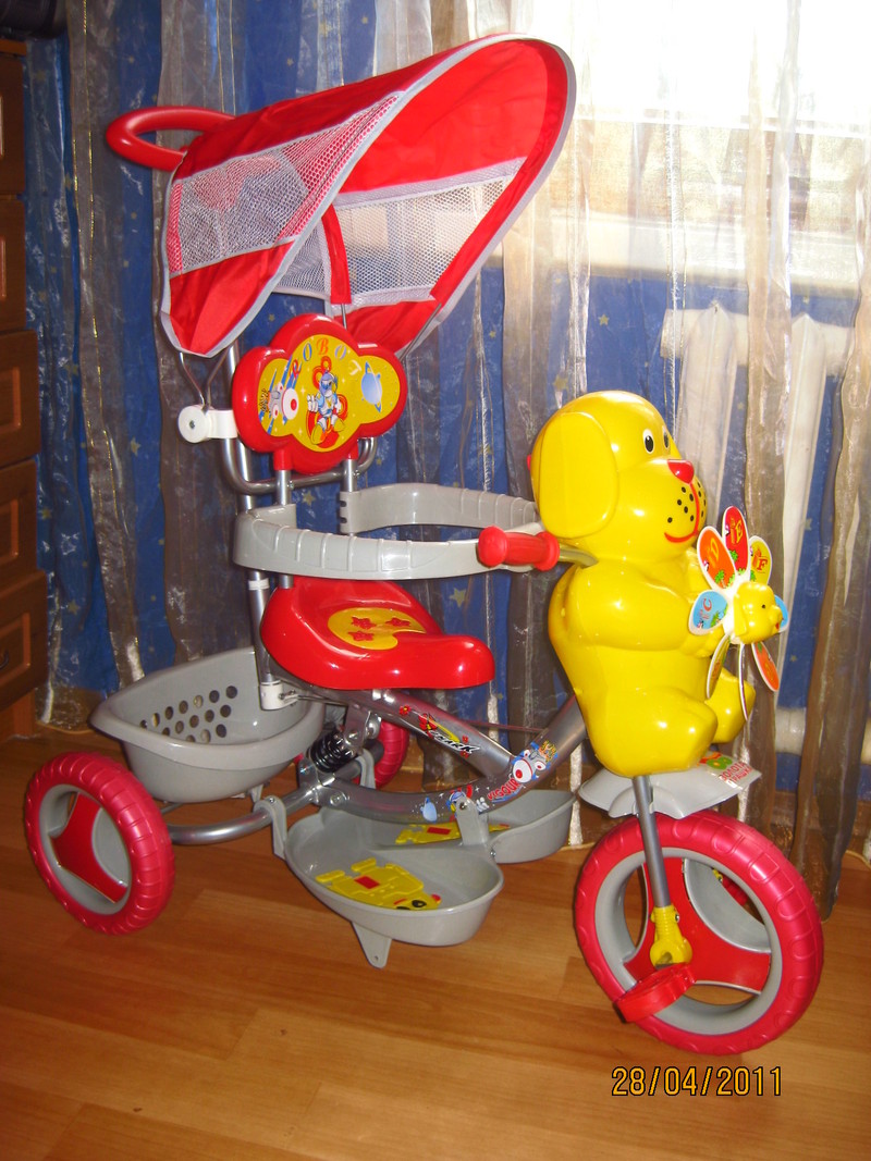 Новые!!!!!!!!!!!!!!!!!!!! Безопасный высококачественный детский трехколесный велосипед . Яркий привлекательный дизайн. Прочная удобная конструкция. Если малыш еще не дотягивается до педалей или просто устанет кататься самостоятельно, он может поставить ножки на специальные подставки, а родители будут катать его, при помощи ручки управления. Характеристики: -сьемная регулируемая по высоте родительская ручка-толкатель -сьемная корзина для игрушек ; - сьемный козырек-тент -музыкальная передняя панель-игрушка на батарейках, - удобное сиденье - сьемная подставка для ног - сьемный ограничитель(для малышей) Возможна пересылка 0509386725 |