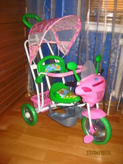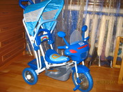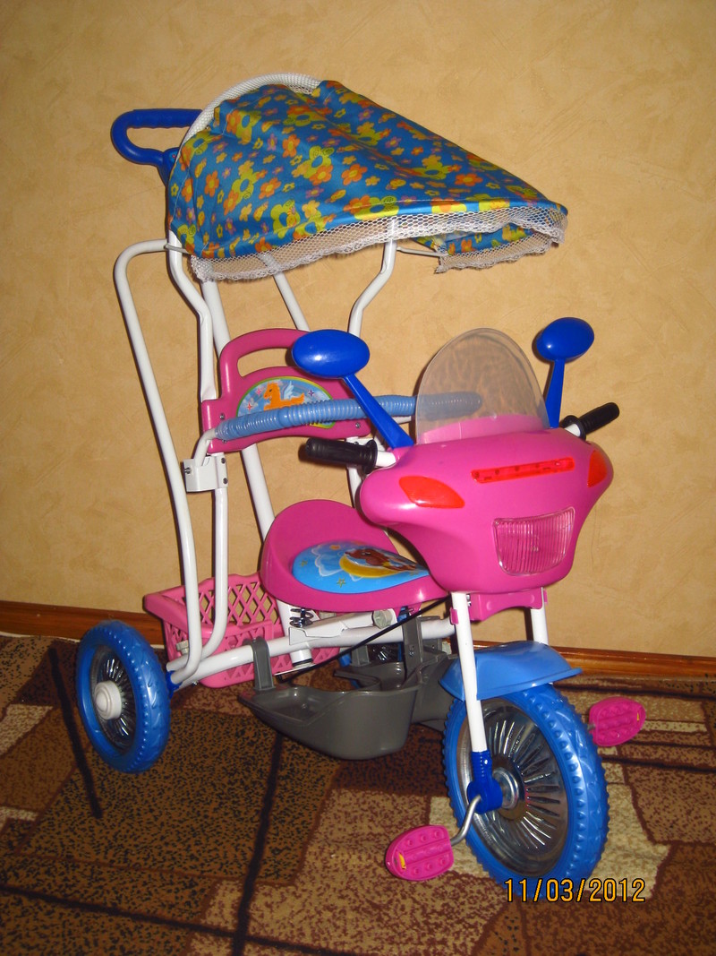 Велосипед создан для маленьких детей, которые ещё не так уверенно держат равновесие и не могут ещё управлять велосипедом. Пока малыш мал или, если устал, родители сами смогут его возить, благодаря удобной ручке-рычагу (в новом родительская ручка может управлять передним колесом - теперь управлять велосипедом будет ещё удобнее. Стильный трехколесный велосипед выполнен в оригинальном дизайне. Его отличие от других велосипедов: железная облегченная рама, ручка-толкатель и подножки. Характеристики: -рама и ручка-толкатель металлические, -колёса из хромированного металла с «шинами» из мягкого износостойкого пластика; -педали - рифлёные пластиковые; - подножка -удобное эргономическое сидение с амортизатором; -на ремнях безопасности мягкие накладки в цвет рамы; -на сиденье – мягкая накладка; -когда переднее колесо жёстко зафиксировано взрослый везёт велосипед за ручку-толкатель и управляет его поворотом; -ребёнок подрос и может «рулить» сам - тогда фиксация снимается; -багажная корзина крепится сзади. -на руле –музыкальная панель -козырёк-тент тканевый,. -Козырёк складывается; переднее колесо - диаметр 25 см; заднее колесо - диаметр 21,5 см. Этот велосипед ярких цветов, станет незаменимым и удобным средством передвижения для Вашего малыша, поднимет ему настроение на прогулке или дома, легкость в управлении порадует также и родителей. Возможна пересылка по Украине